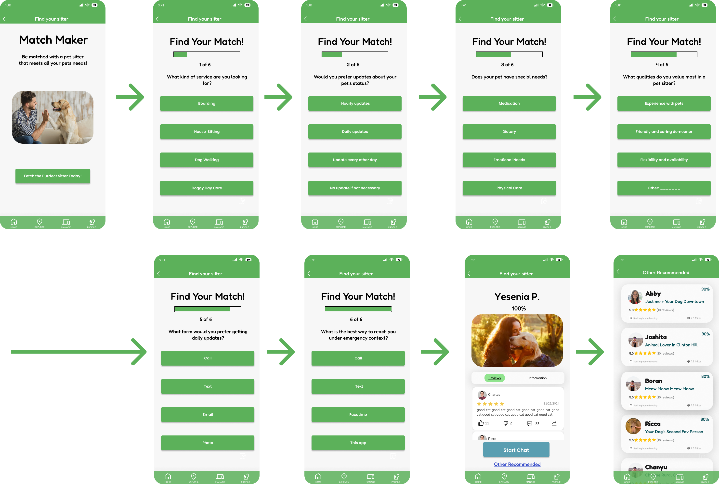 Before: Pet owners need to complete the Match Maker questionare to see pet sitters.