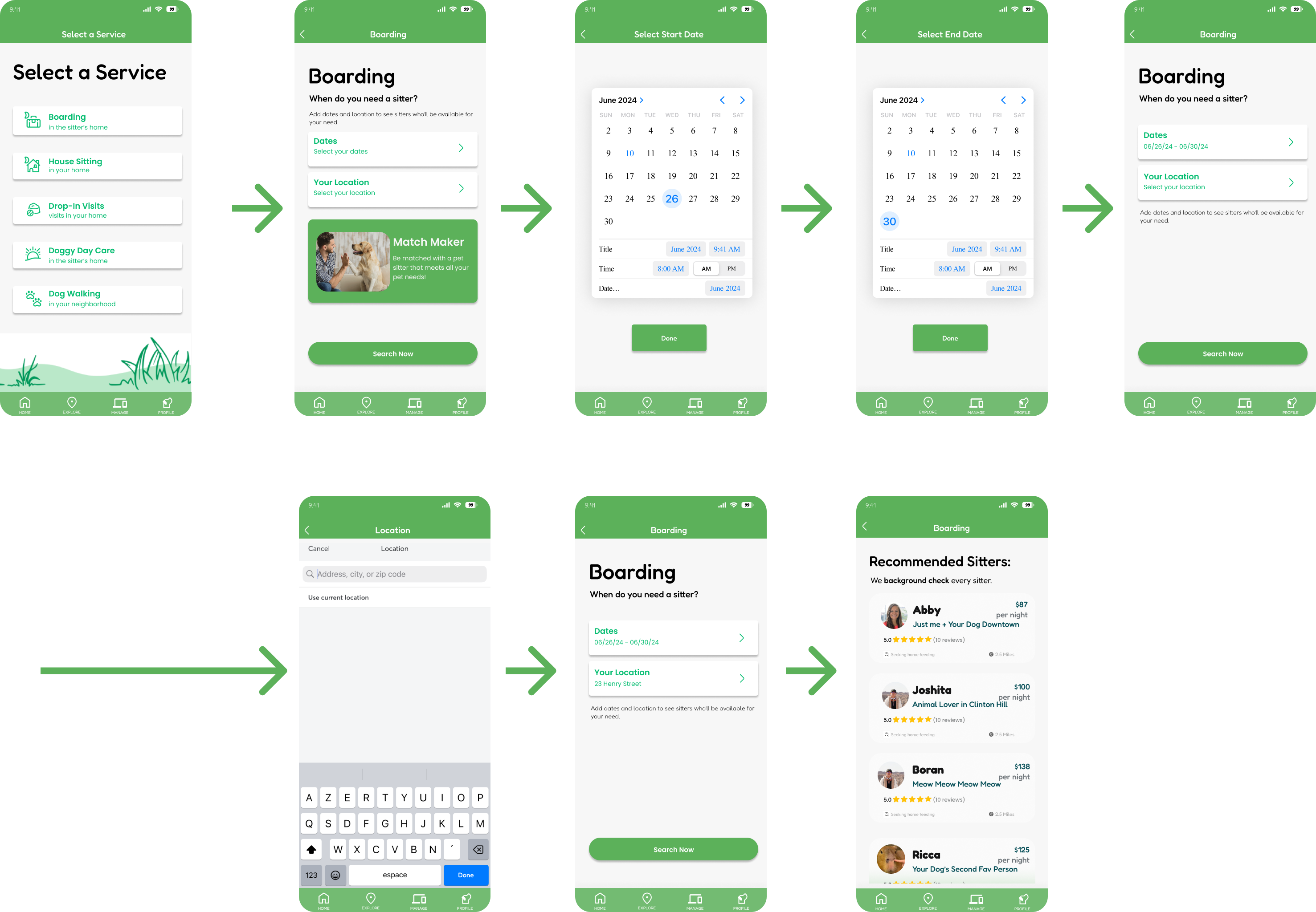 We reviewed several existing pet care solutions, including TrustedHousesitters, Pet Sitters International, and Bark, and ultimately selected the Rover app for its versatility and ability to support a wide range of pet care needs. Rather than creating a new platform from scratch, we chose to enhance an existing, trusted service. Expanding Rover’s offerings allows us to better meet user needs while building on a familiar and widely used system.